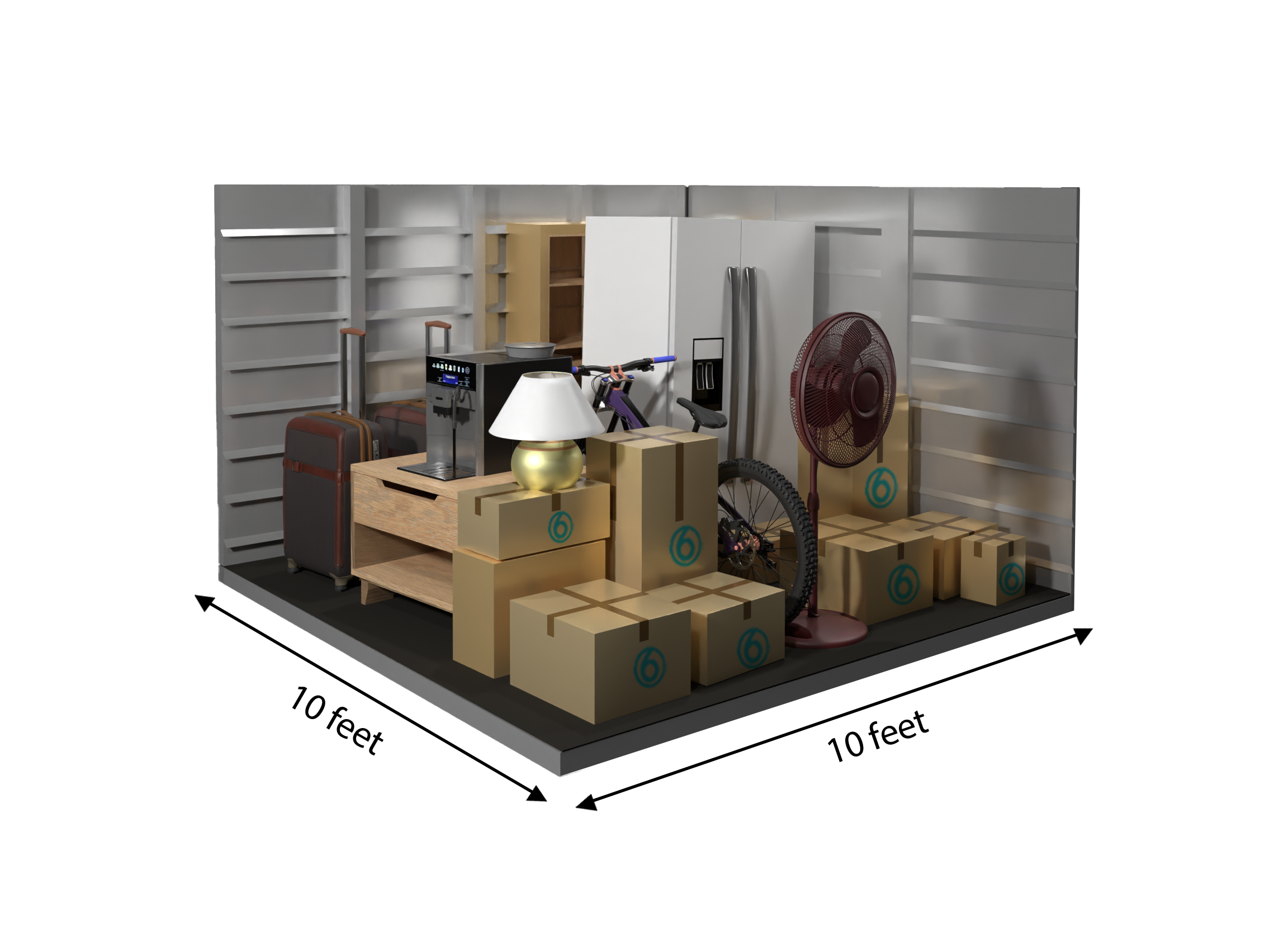 Our 10×10 (100 sq. ft.) units are about the size of a standard bedroom. Perfect for storing the contents of a one-bedroom apartment, including furniture, boxes, and seasonal items.