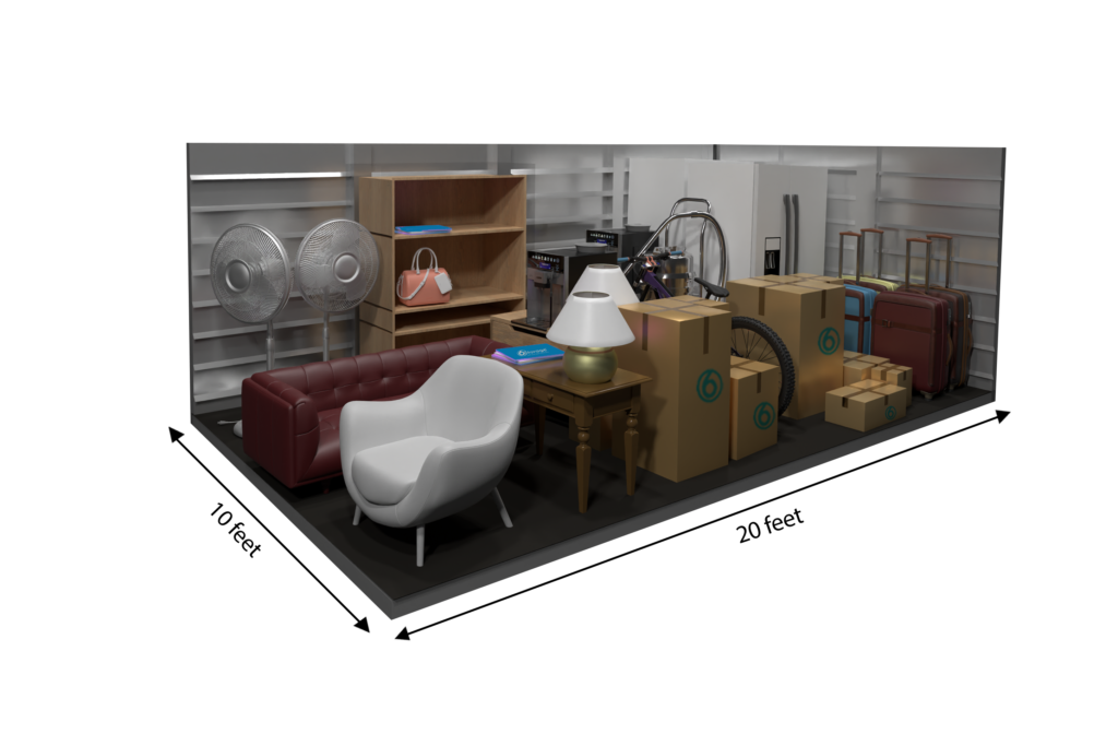 Our 10×20 (200 sq. ft.) units are the size of a one-car garage. They can easily hold the contents of a three-bedroom home, large appliances, or even a small vehicle.